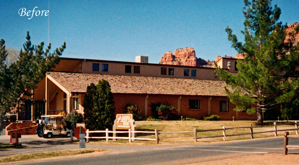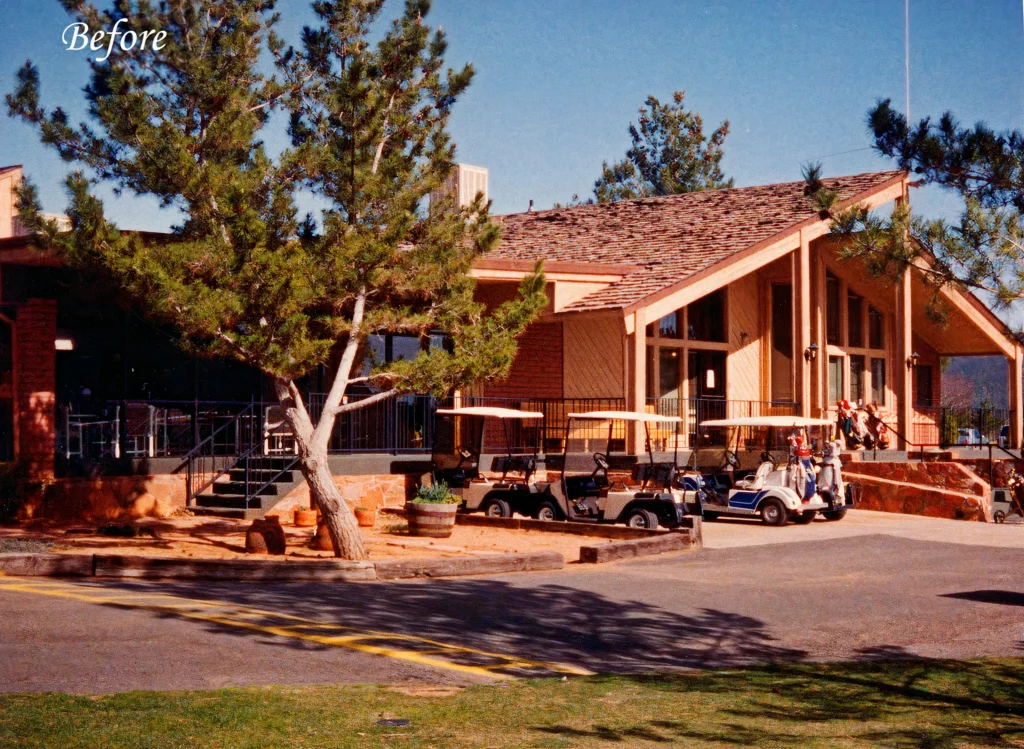 This was an addition and remodeling project for a golf course clubhouse in Sedona. What started as a need to replace the wood shake roof which was falling apart, the project became more inclusive. We replaced all roofing, improved pitch where standwater had caused leakage and increased insulation to these roofs, replaced existing roof-mounted mechanical equipment with new efficient units while enclosing them in an architecturally integrated penthouse. Further, we added 4000 square feet of structure to cover the golf cart parking yard, and significantly remodeled the exterior of the clubhouse to bring the architecture up to date.