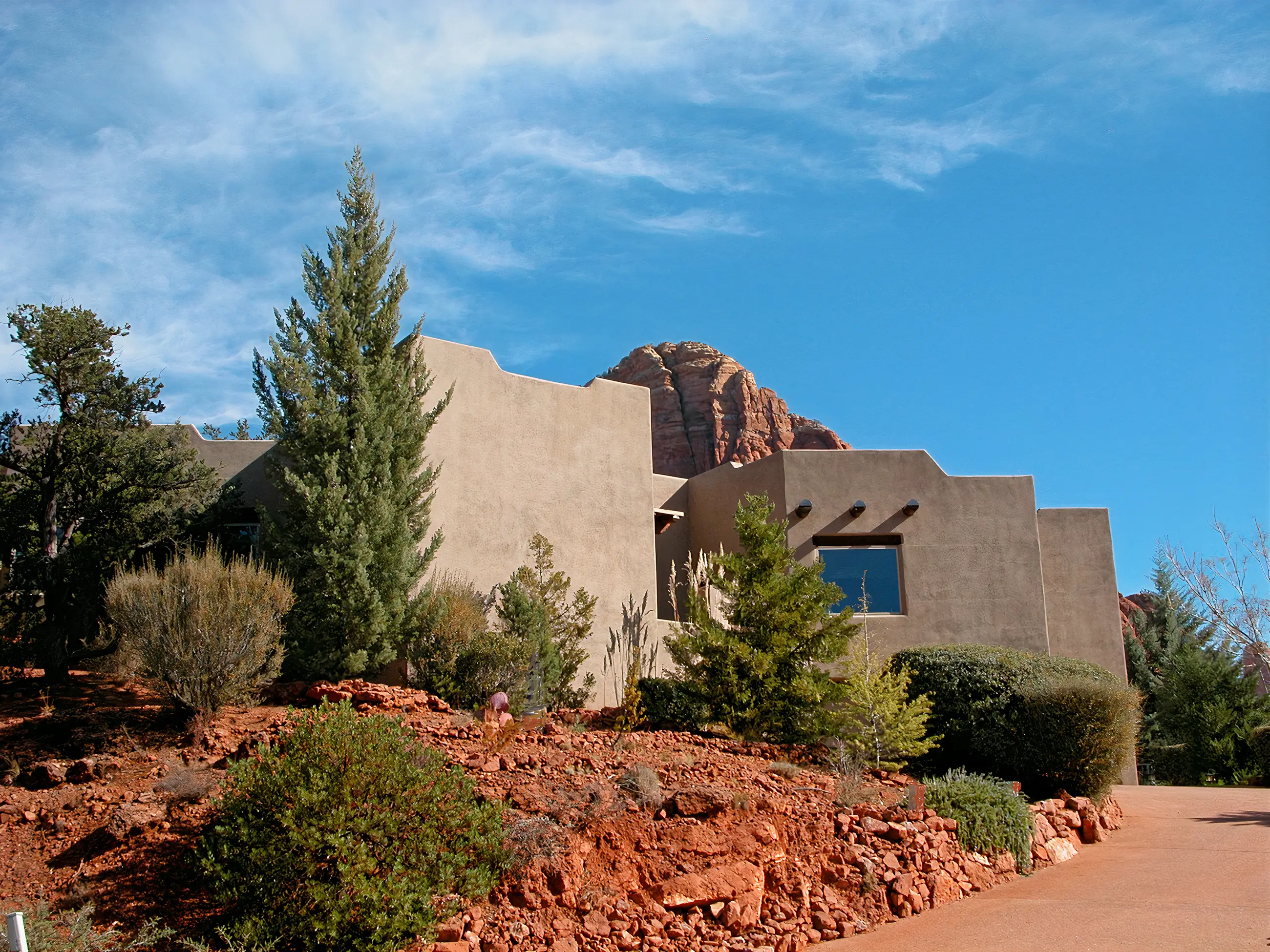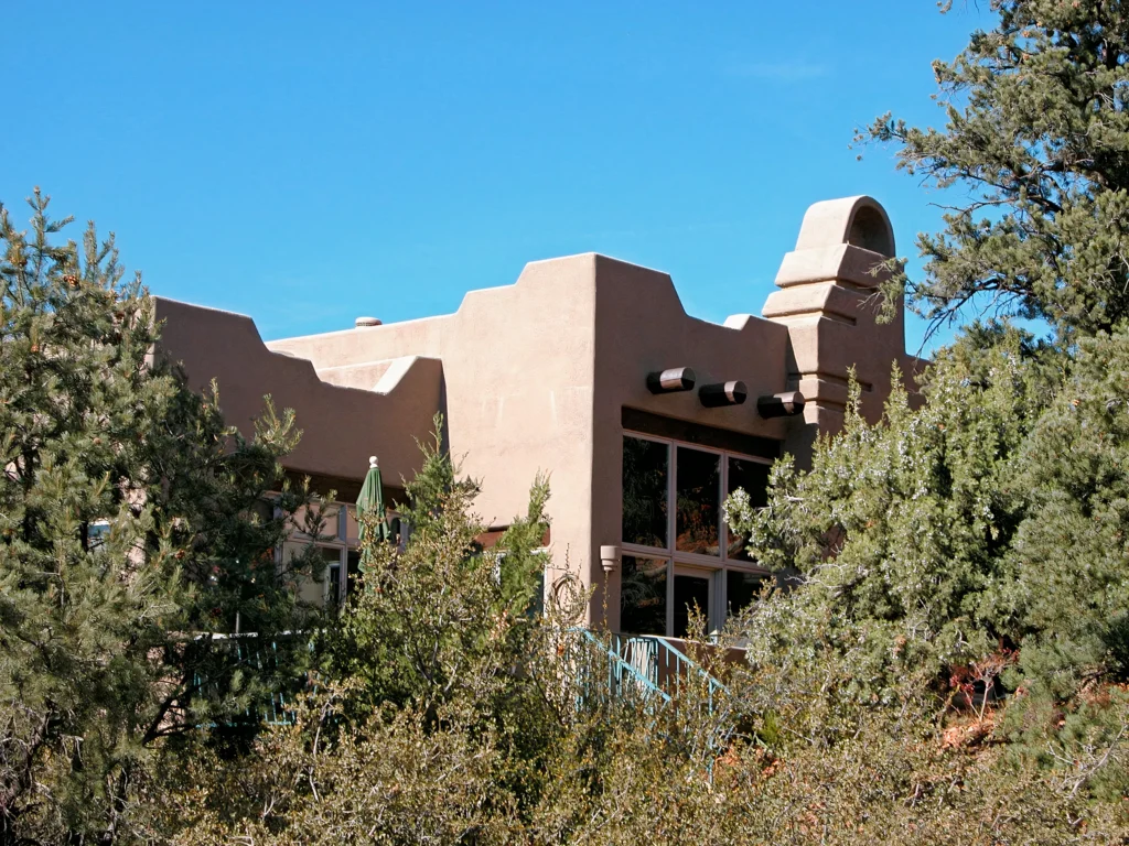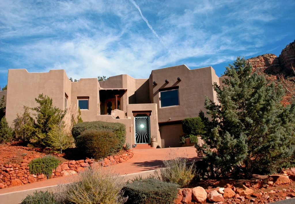 An early foray into residential use of alternative building systems, this Sedona house, as the one which led to it, is built of light gauge steel frame. Light gauge steel is virtually all made of recycled steel.